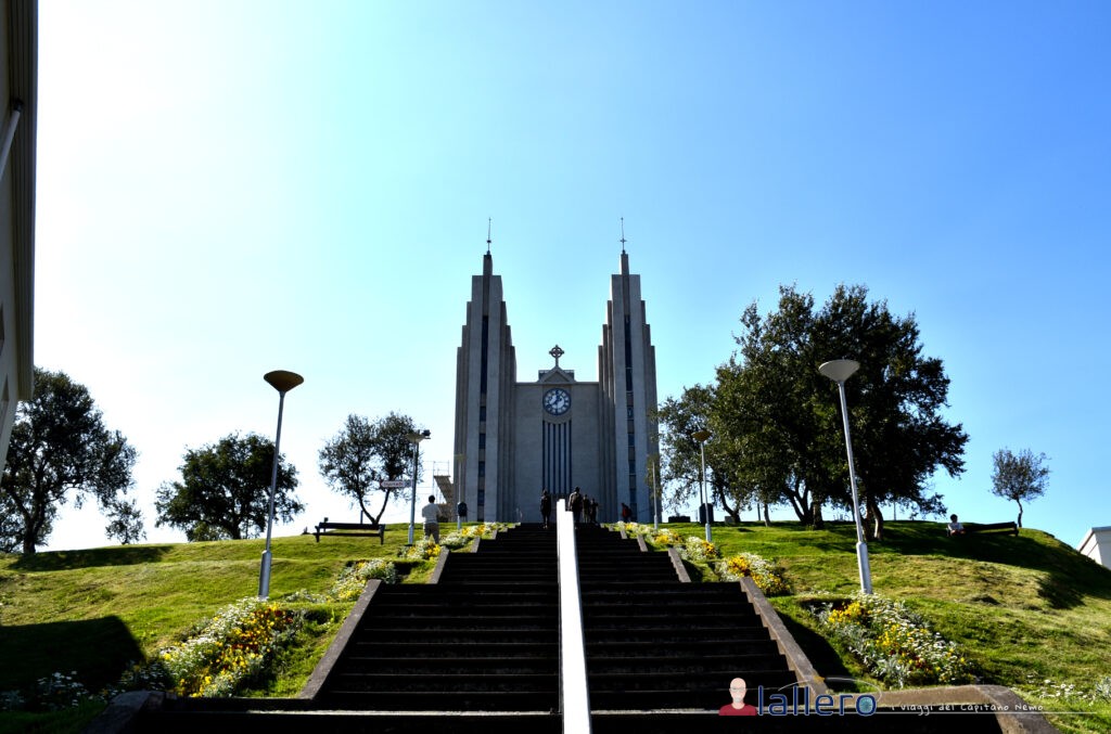 Accedendo in auto dal Ring si vede subito, su una collina, l’Akureyrarkirkja, una chiesa moderna in stile luterano costruita nel 1941 per la Thjodkirkja (la Chiesa Nazionale luterana d’Islanda).