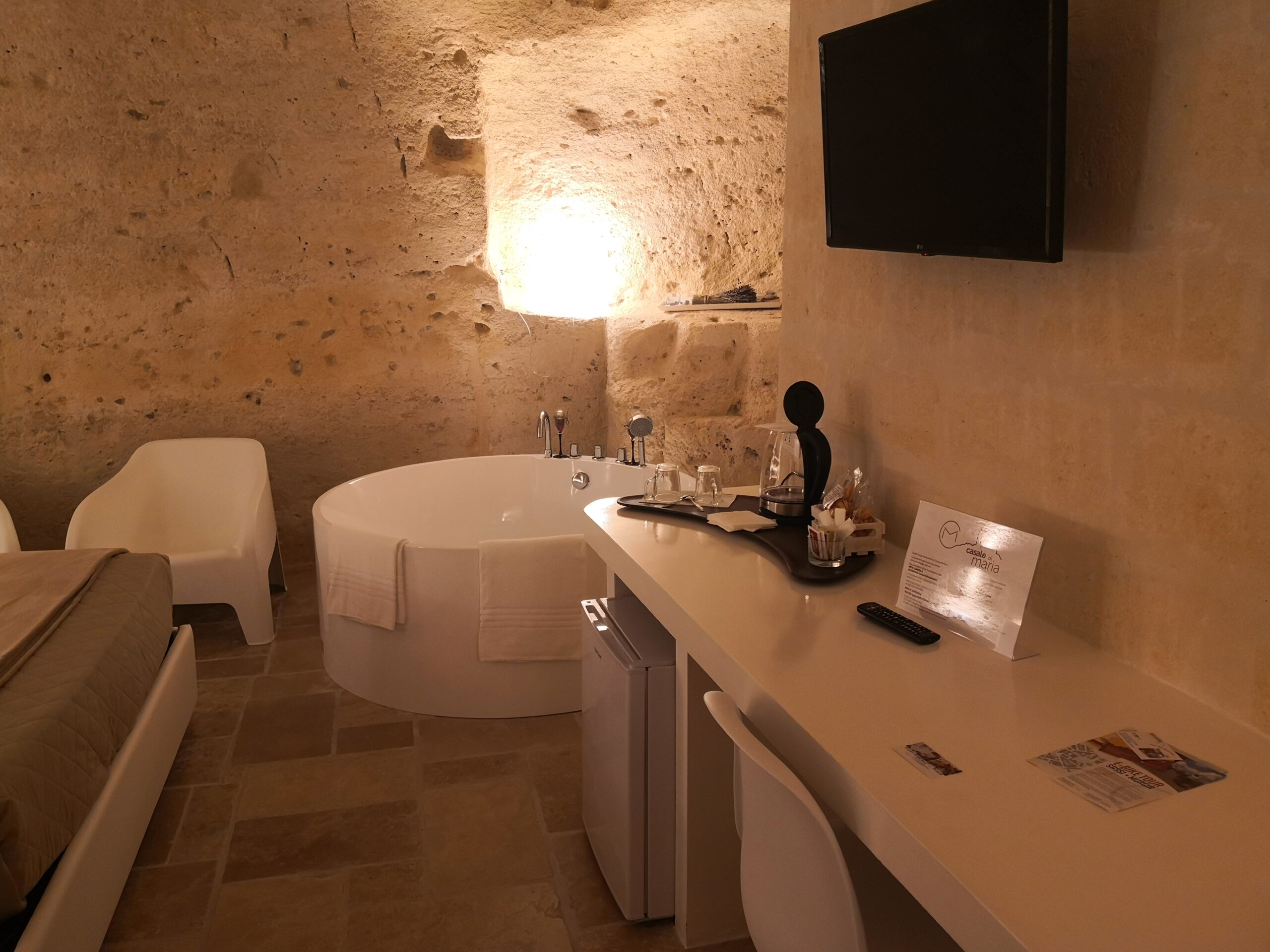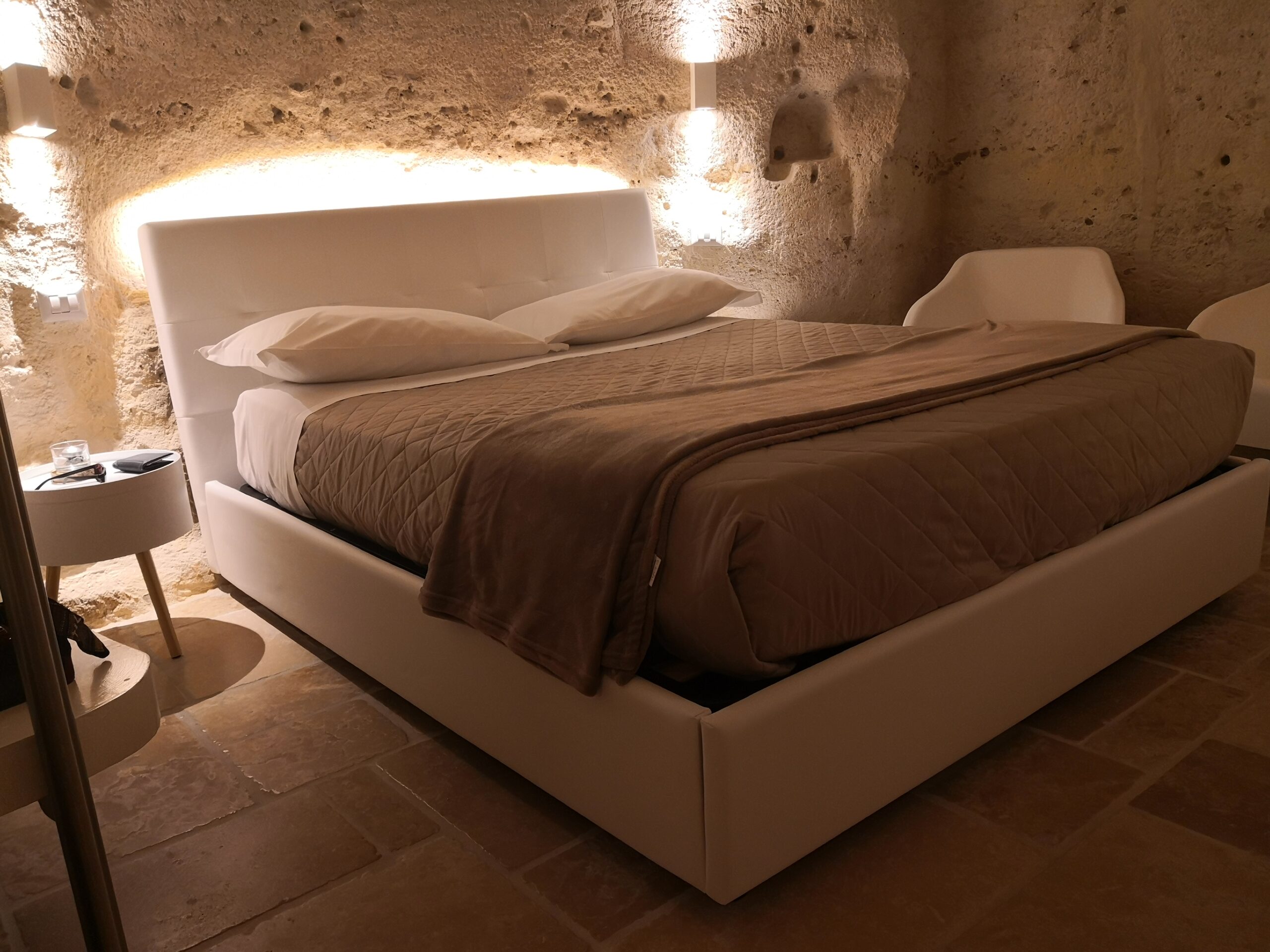 Se un tempo – come si vede nelle ricostruzioni d’epoca visitabili in città – la grotta era un riparo per famiglie numerose che conducevano una vita povera in condizioni igienico-sanitarie deprecabili, oggi il restyling delle case-grotta le ha rese un’esperienza di soggiorno molto particolare… da provare, ve lo garantisco!