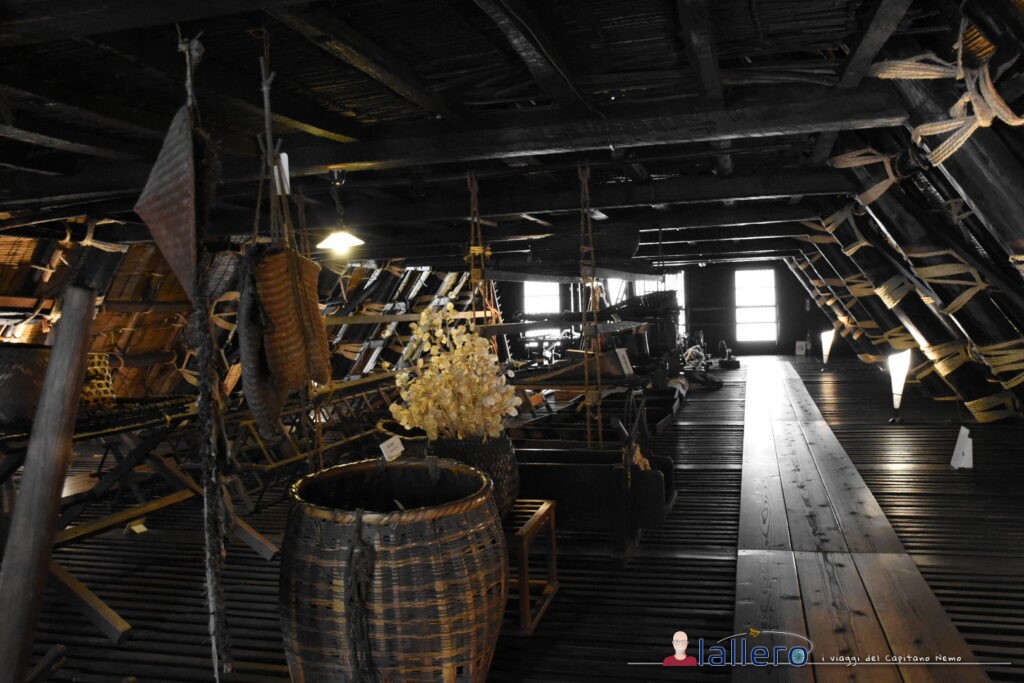 Oltre ai famosi tetti in paglia, la visita permette di ammirare la maestria nella realizzazione della struttura che è interamente in legno e corda affinché nella sua grandezza fosse comunque abbastanza flessibile da non collassare sotto la grande mole di neve che l’avrebbe ricoperta.