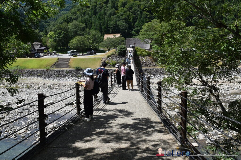 A un’estremità del villaggio c’è un ponte sospeso sul fiume Shō-kawa che, oltre a portare al parcheggio esterno, permette di raggiungere le rive del fiume e i bordi del boshcetto per concedersi un pic nic o un po’ di relax nella natura.