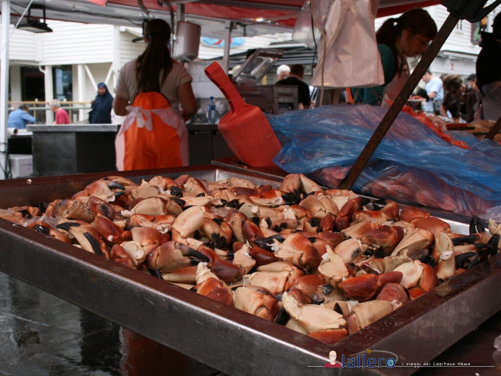 Parlo del salmone, tra i più buoni e rinomati al mondo, il merluzzo, il cui sapore -anche nelle forme di stoccafisso e di baccalà – non ha nulla a che spartire con quello che mi ritrovavo in tavola quando da bambino stavo male! E poi, sempre dal mare, arrivano le aringhe, di una corposità e una delicatezza da competere col filetto di manzo, i gamberi e i granchi, in alcuni casi di dimensioni imbarazzanti.